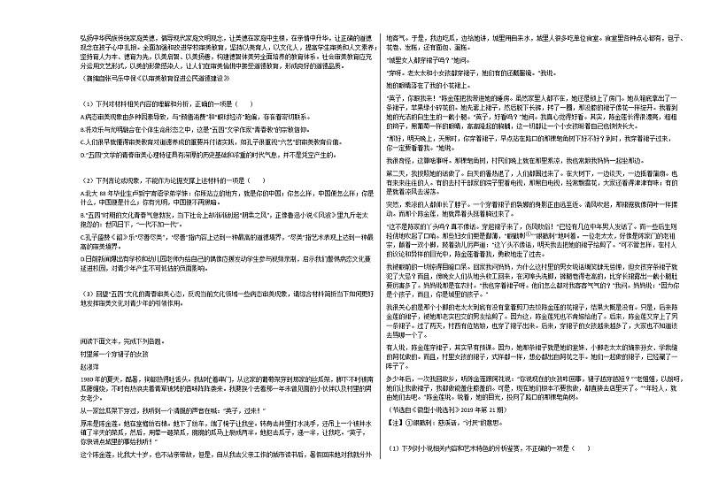 这是一份河北省张家口市2020-2021学年高一上学期第二次月考语文试题人教版无答案,共7页。试卷主要包含了现代文阅读,文学类文本阅读,文言文阅读,古代诗歌阅读,情景默写,选择题,语言表达,材料作文等内容,欢迎下载使用。