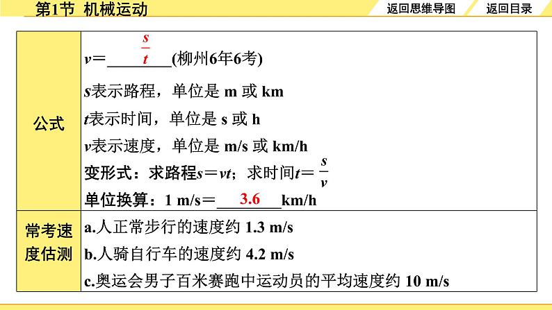 运动快慢的比较(柳州6年6考)