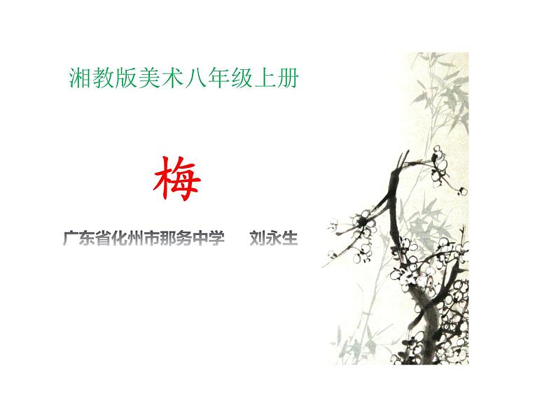 初中美术湘美版八年级上册第2课 梅竹言志教学演示ppt课件: 这是一份初中美术湘美版八年级上册第2课 梅竹言志教学演示ppt课件,共12页。