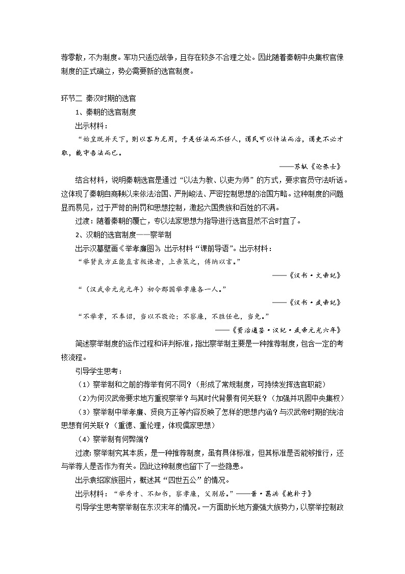 历史选择性必修1 国家制度与社会治理第5课 中国古代官员的选拔与管理教学设计及反思