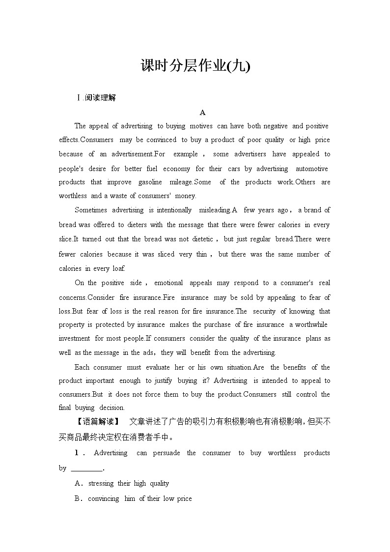 【语篇解读】 文章讲述了广告的吸引力有积极影响也有消极影响,但买不买商品最终决定权在消费者手中。
