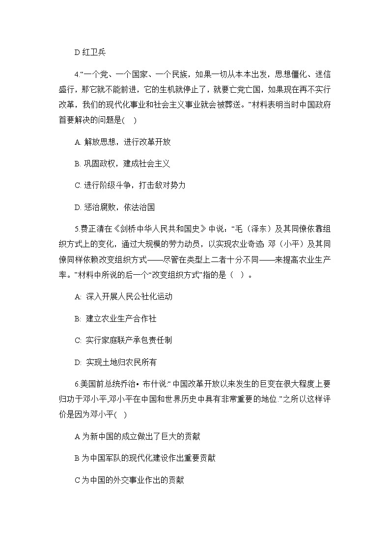 高中政治人教版新教材必修一中国特色社会主义第三课只有中国特色社会主义才能发展中国检测题(二)