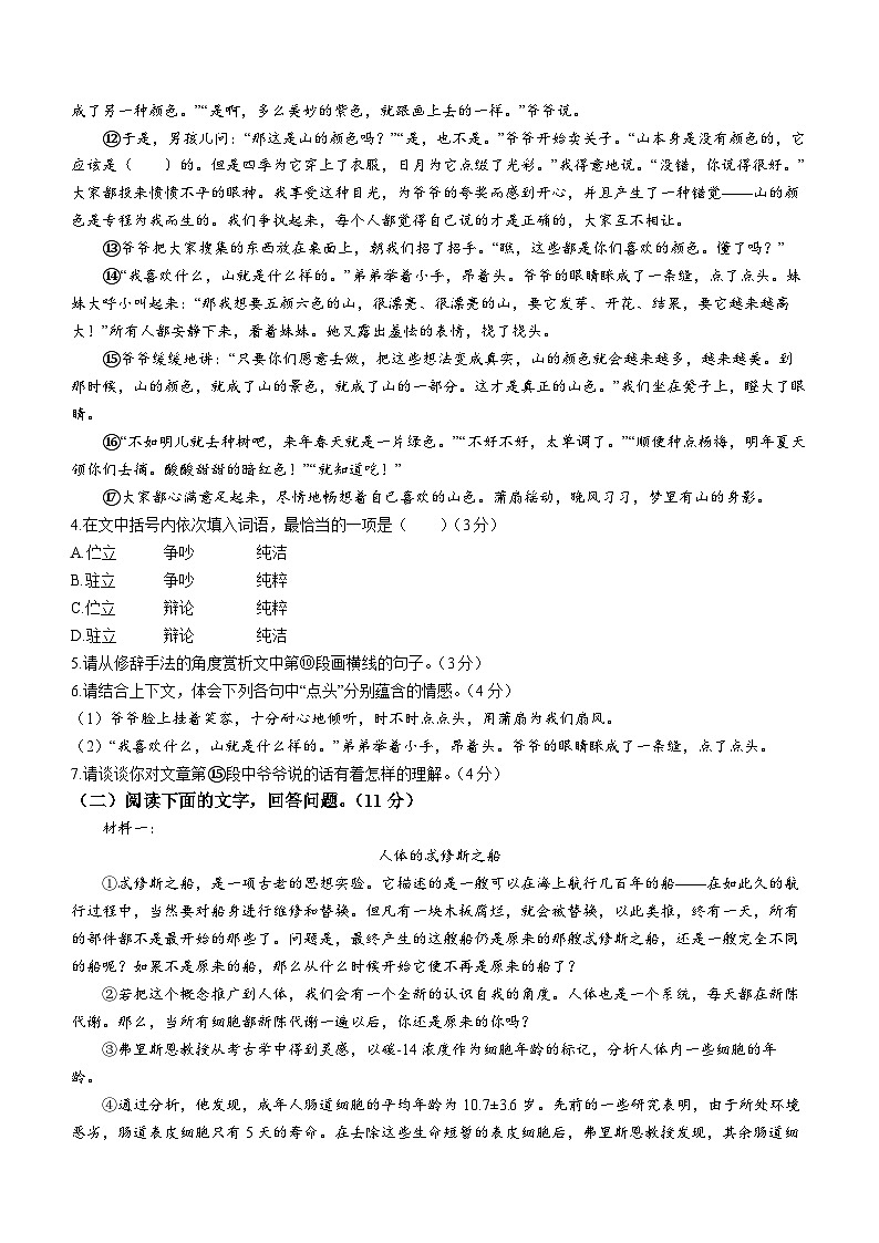 2022-2023学年安徽省宿州市泗县八年级下学期期中语文试题及答案: