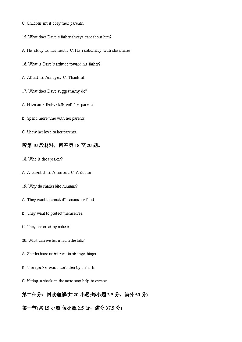 第二部分:阅读理解(共20小题;每小题2.5分,满分50分)