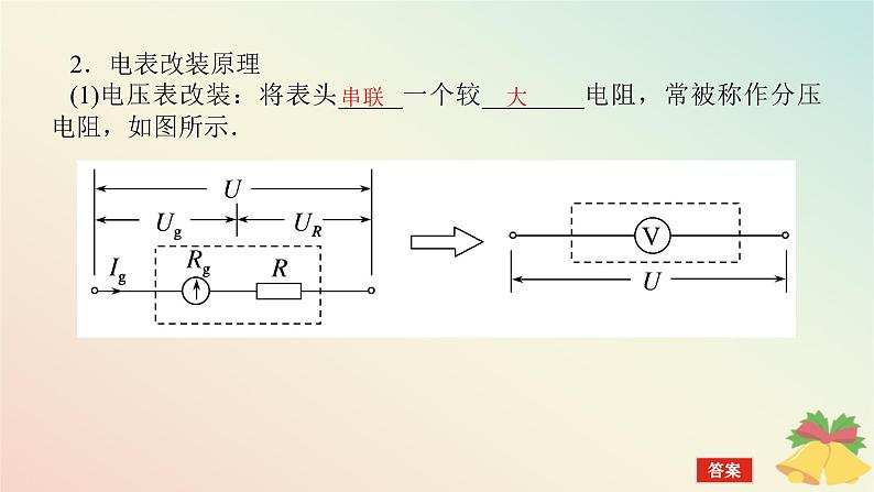2.电表改装原理(1)电压表改装:将表头_____一个较________电阻,常被称作分压电阻,如图所示.