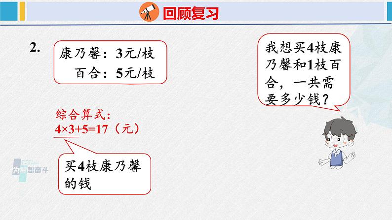 展开理解和掌握混合运算的运算顺序,能按照正确的运算顺序进行脱式计算。(重点)学会列综合算式解决需要用两步计算才能解决的问题。(难点)