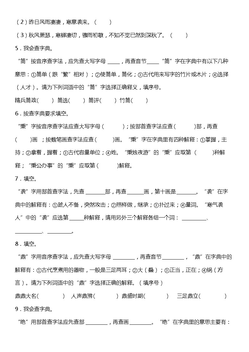【详解】本题考查学生对查字典的方法的掌握,以及多义字在不同词语中不同字义的辨析。