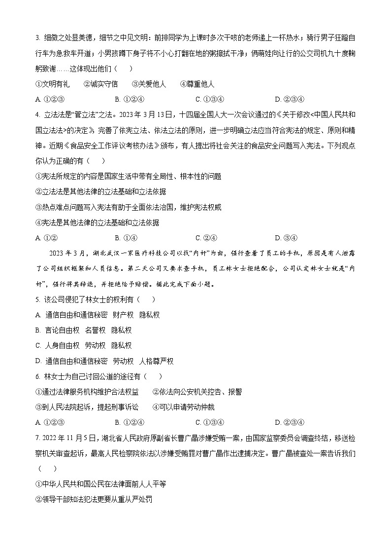 所属成套资源:2023年各省中考道德与法治真题卷(原卷版+解析)