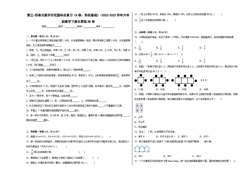 小学数学北京版五年级下册整理与复习课时作业: 这是一份小学数学北京版五年级下册<a href="/sx/tb_c4047999_t7/?tag_id=28" target="_blank">整理与复习课时作业</a>,共12页。试卷主要包含了填空题,判断题,选择题,作图题,解答题等内容,欢迎下载使用。