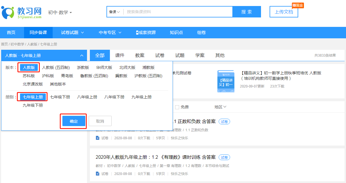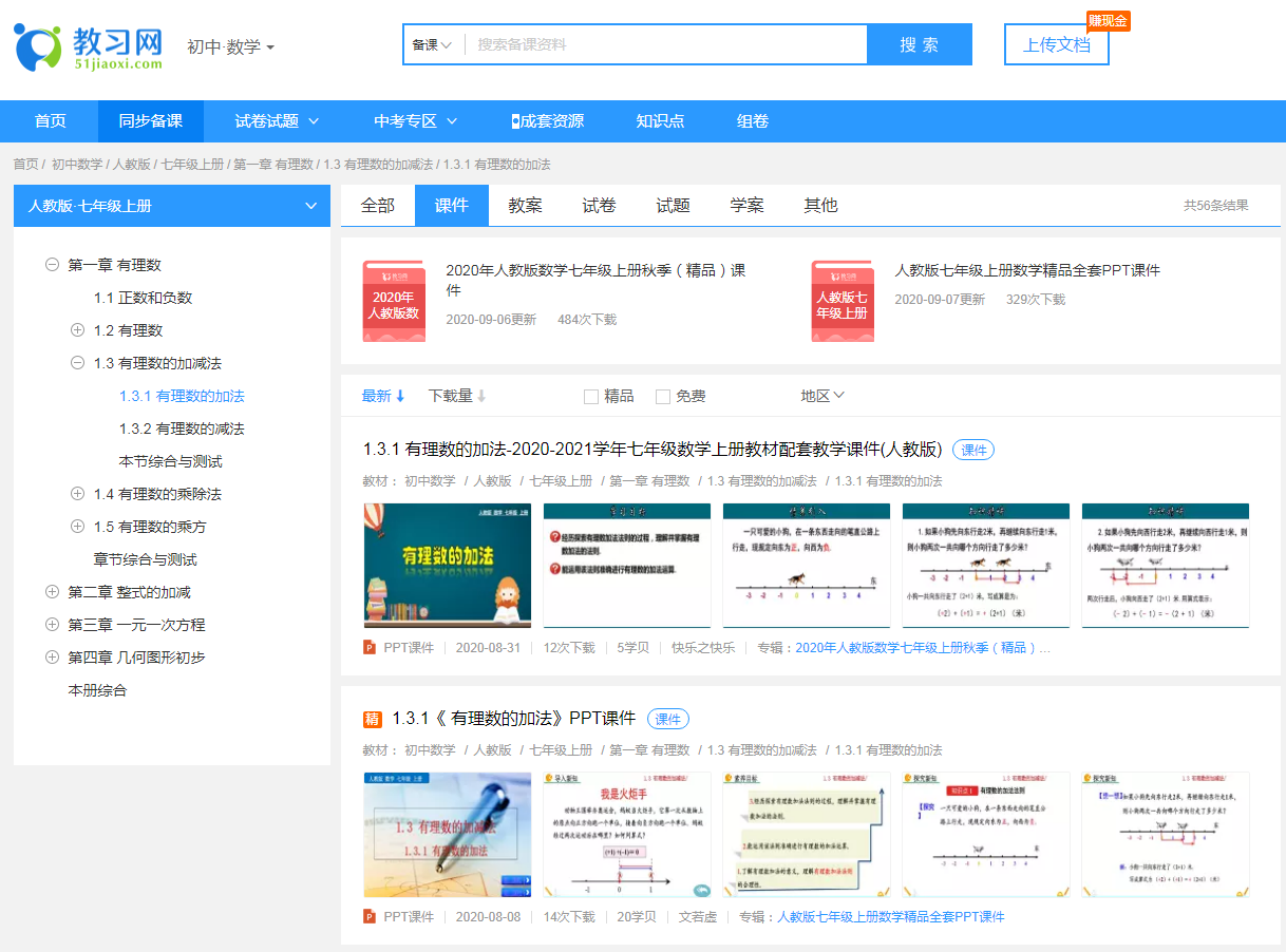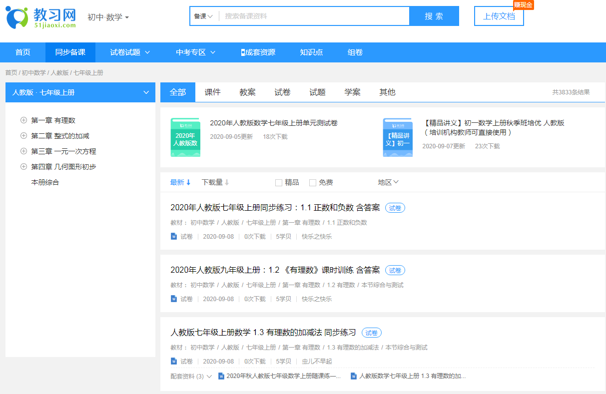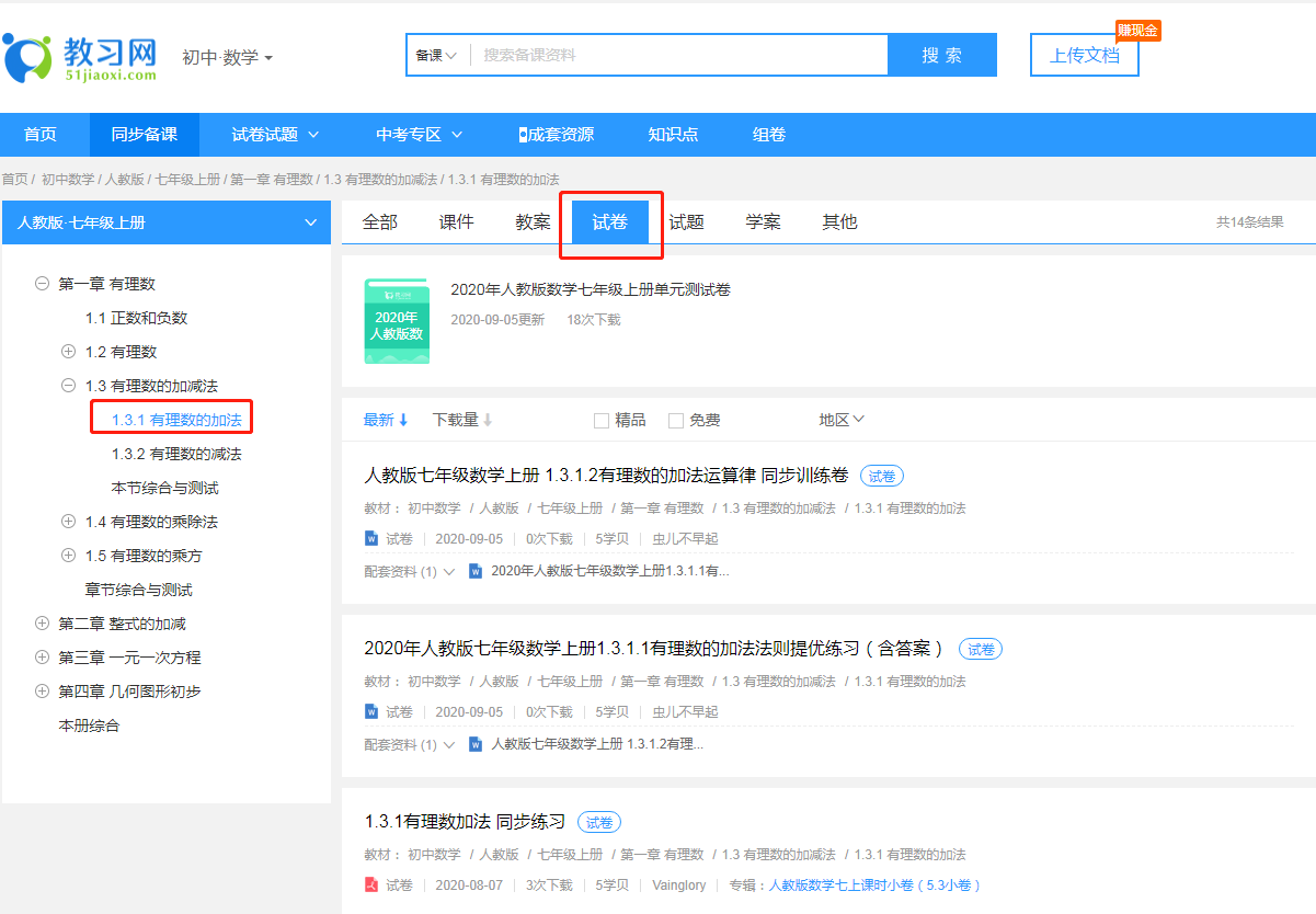 七年级的数学老师想要下载同步应该去哪里下载呢?今天小编手把手教学,下面,我以找人教版数学七年级《有理数的加法》同步练习题为例,给大家做详细介绍。