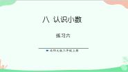 这是一份北师大版数学三年级上册 第八单元 认识小数习题课件,文件包含第一课时文具店pptx、第二课时货比三家pptx、第三课时存零用钱pptx、第四课时寄书1pptx、第五课时寄书2pptx、第六课时能通过吗pptx、第八单元知识总览与考点强化训练pptx等7份课件配套教学资源,其中PPT共87页...