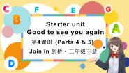 这是一份Starter unit Good to see you again 第3课时(Parts 3a & 3b)(课件+素材)2023--2024学年Join in 外研剑桥英语三年级下册,文件包含第3课时Parts3a3bpptx、Greetingsongmp4等2份课件配套教学资源,其中PPT共29页, 欢迎下载使用。