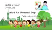 这是一份闽教版英语六年级上册 Unit6 An Unusual Day PPT课件+教案+单元试卷,文件包含Unit6_Listen_and_followA教学课件ppt、Unit6_Listen_and_followB教学课件ppt、Unit6__PartA教学设计docx、Unit6__PartB教学设计docx、一般过去时的概念及用法doc、Unit6_单元测试卷doc、一般...