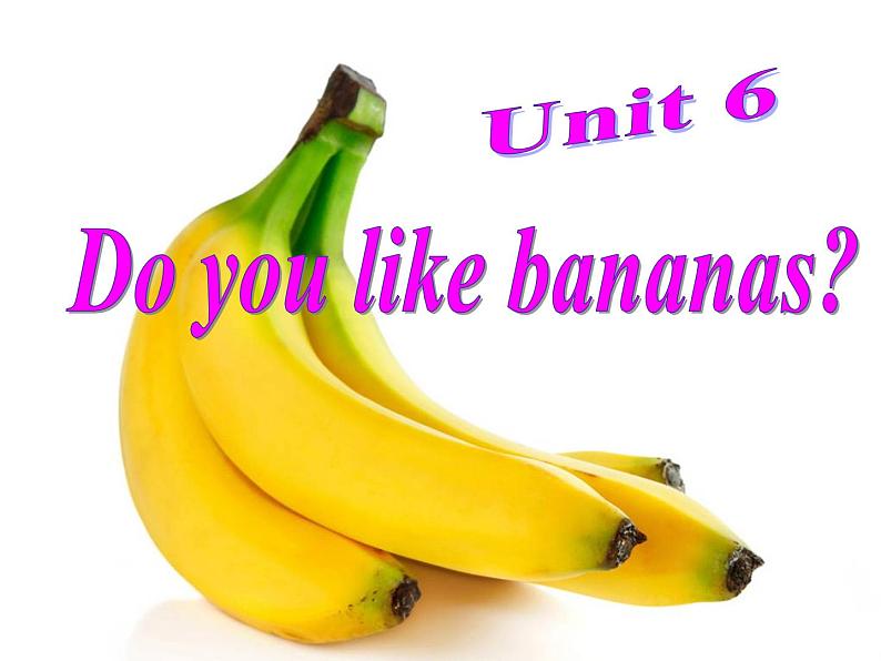 这是一份人教新目标 (Go for it) 版Unit 6 Do you like bananas?Section A教课ppt课件,文件包含Unit6SectionAGF-3cpptx、U6Pronunciation1mp3、U6Pronunciation2mp3、Unit6SectionB2bmp3、Unit6WordsandExpressionsmp3、Doyoulikeitmp4、applesong-国语流畅mp4等7份课件配套教学资源,其中PPT共27页, 欢迎下载使用。