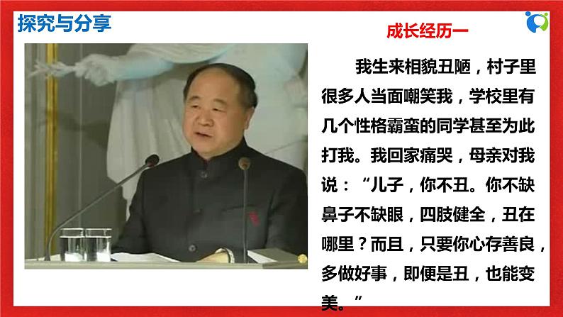 1.莫言的苦恼、如何解决: 2. 这个成长经历教会我们什么?