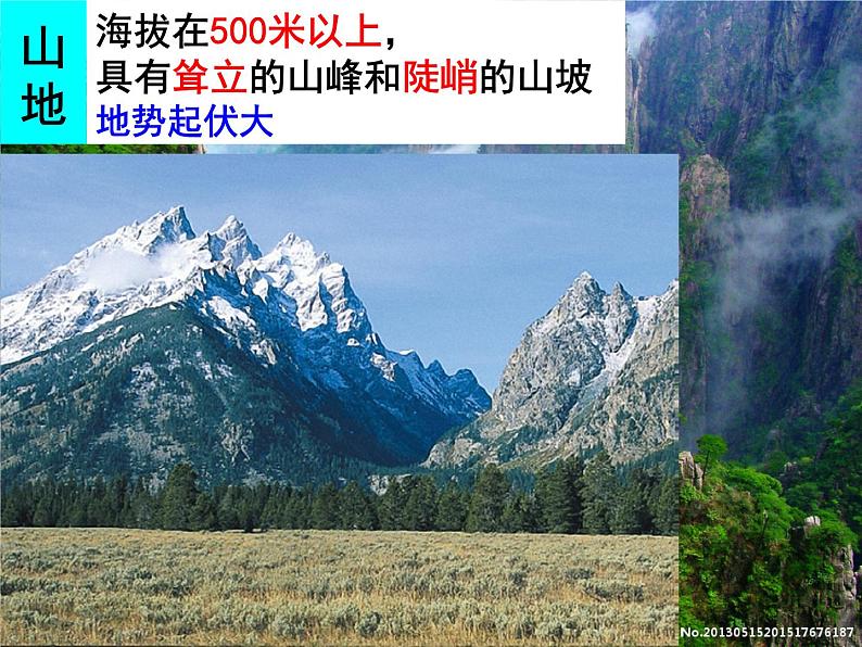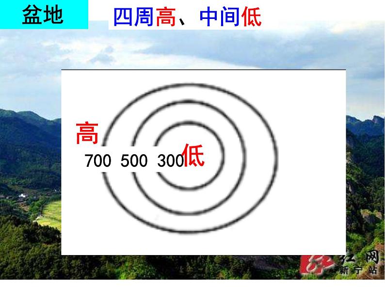 山体部位:山峰、鞍部、山谷、山脊、陡崖 地形类型:盆地、高原、平原、山地、丘陵
