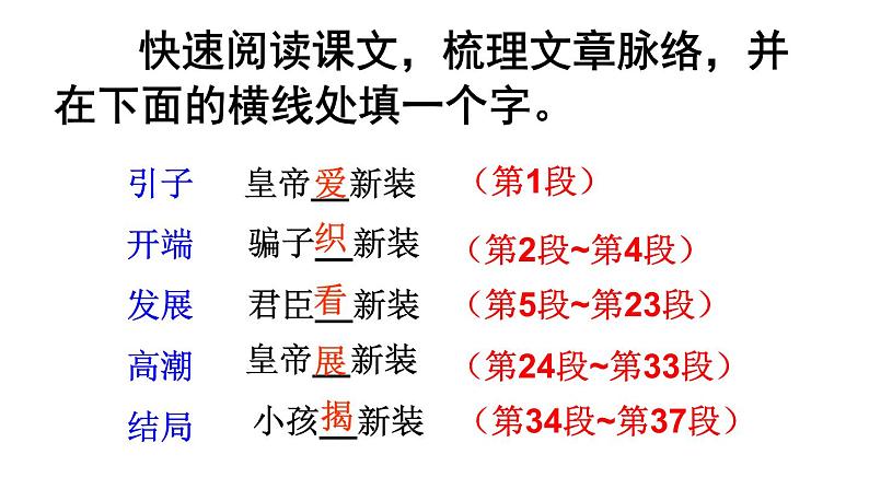 快速阅读课文,梳理文章脉络,并在下面的横线处填一个字。