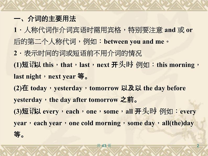 这是一份新高考英语二轮语法复习课件-介词和连词,共31页。PPT课件主要包含了共 43 页,表示并列的连词,表示转折的连词,名校模拟演练等内容,欢迎下载使用。