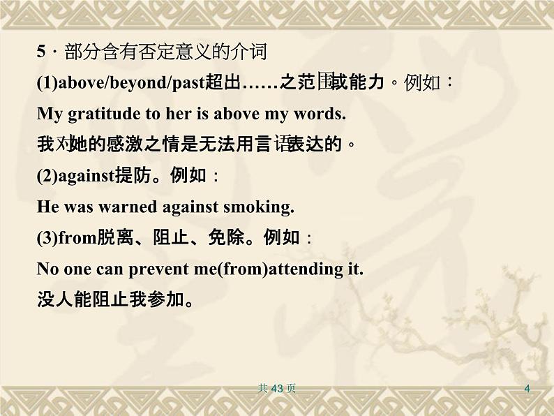 (1)abve/beynd/past超出……之范围或能力。例如: