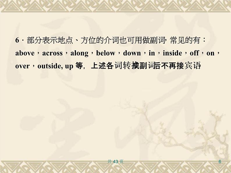 6.部分表示地点、方位的介词也可用做副词,常见的有: