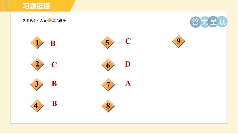 这是一份北师大版八年级上册5 三角形的内角和定理习题ppt课件,共15页。PPT课件主要包含了答案呈现,习题链接等内容,欢迎下载使用。