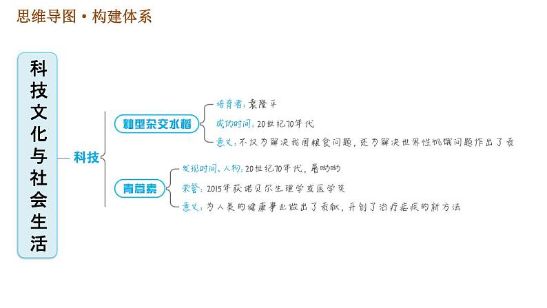 9.探究问题。材料一 2015 年屠呦呦获得诺贝尔生理学或医学奖,她发明的青蒿素类药物对疟疾的治愈率很高,得到世界卫生组织的认可和大力推广,使全球数亿人受益,对人类生命健康事业做出了巨大贡献。早在20世纪 70 年代初,袁隆平在世界上首次育成籼型杂交水稻,该水稻比常规稻增产 20%左右,被称为 “东方魔稻”。袁隆平在实践中提出了水稻杂交新理论,实现了水稻育种的历史性突破,被国际农学界誉为 “杂交水稻之父”。