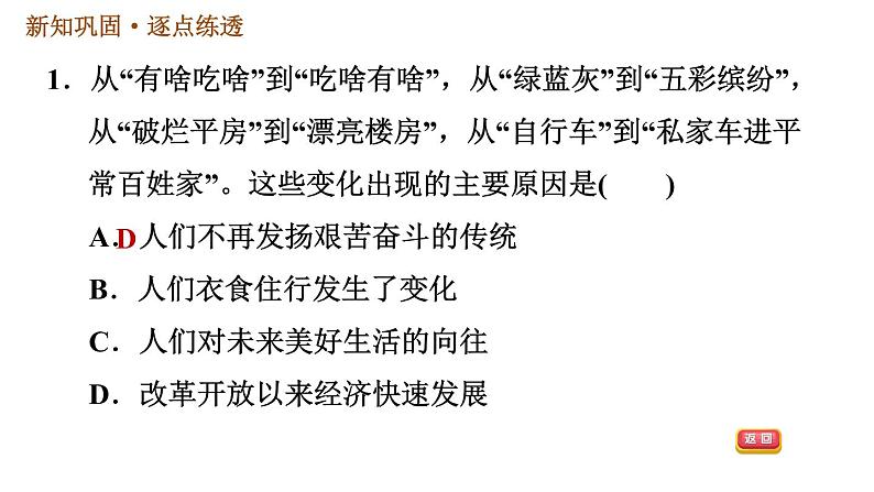这是一份初中历史人教部编版八年级下册第19课 社会生活的变迁习题课件ppt,共24页。PPT课件主要包含了新知巩固·逐点练透,新题精题·培优提能,见习题,答案A,答案D等内容,欢迎下载使用。