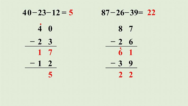 这是一份小学数学人教版二年级上册2 100以内的加法和减法(二)综合与测试教课课件ppt,共19页。PPT课件主要包含了+18,-41,-47,+76,+35,-17,-39,+55,+27,+28等内容,欢迎下载使用。