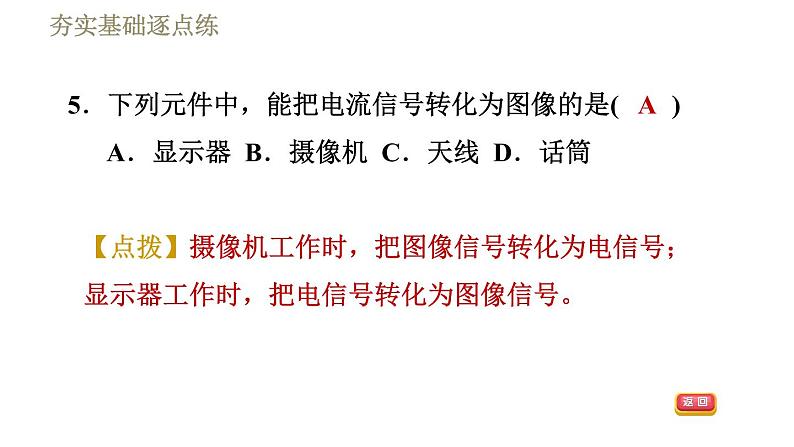 5.下列元件中,能把电流信号转化为图像的是( )A.显示器 B.摄像机 C.天线 D.话筒