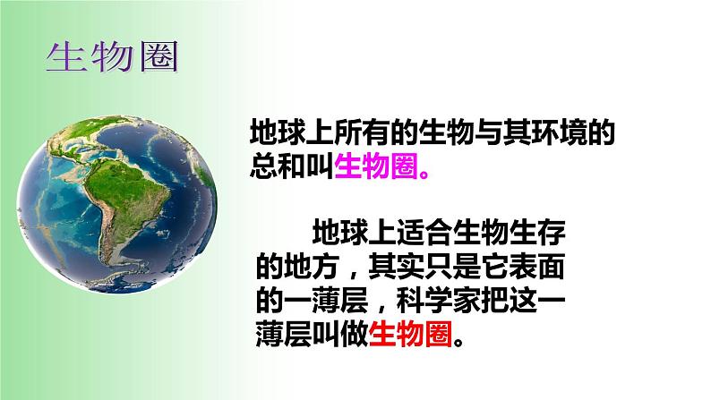 生物圈是一个统一的整体,是地球上最大的生态系统,是所有生物共同的家园。