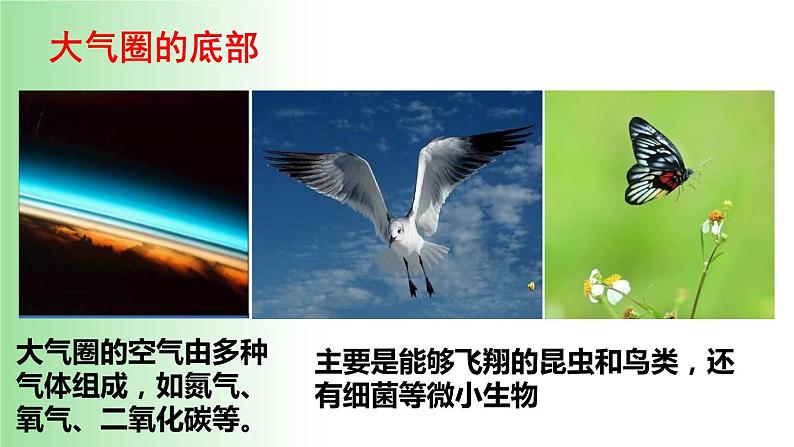 七年级上册第三节 生物圈是最大的生态系统图文课件ppt: 这是一份七年级上册第三节 生物圈是最大的生态系统图文课件ppt,共20页。PPT课件主要包含了大气圈的底部,水圈的大部,岩石圈的表面,草原生态系统,湿地生态系统,海洋生态系统,森林生态系统,淡水生态系统,农田生态系统,城市生态系统等内容,欢迎下载使用。