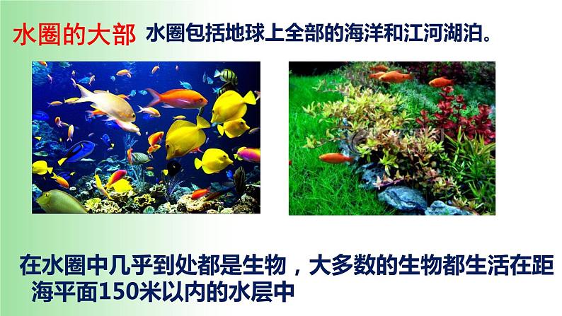 在水圈中几乎到处都是生物,大多数的生物都生活在距海平面150米以内的水层中