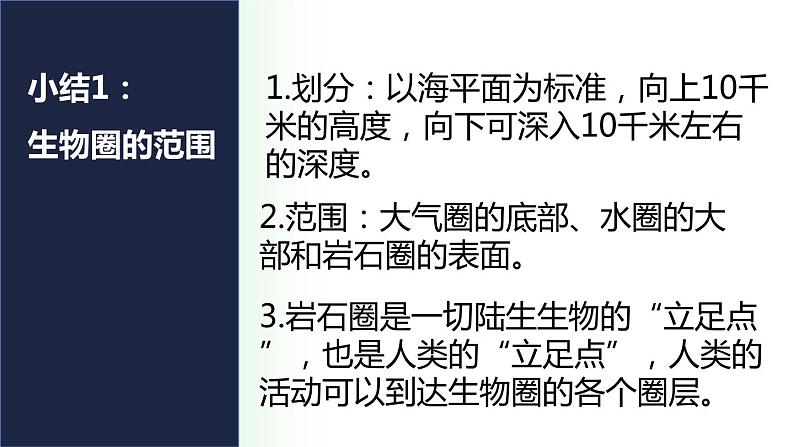 1. 生物圈概念: 地球上所有的生物和它们所生活的环境的总和