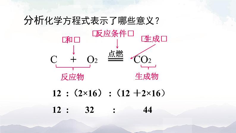 如:每12份质量的碳和32份质量的氧气完全反应,生成44份质量的二氧化碳。