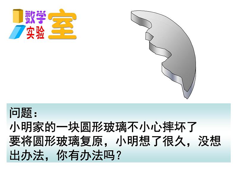 现在你知道了怎样要将一个如图所示的破损的圆盘复原了吗?