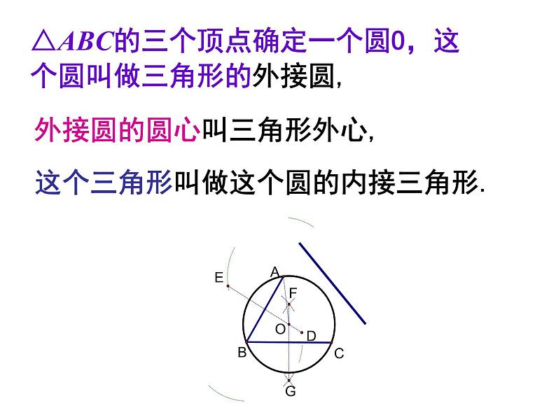 △ABC的三个顶点确定一个圆O,这个圆叫做三角形的外接圆,