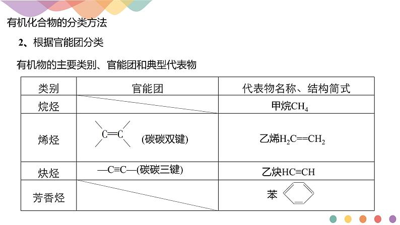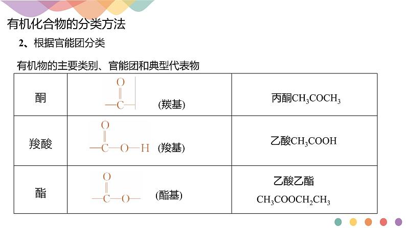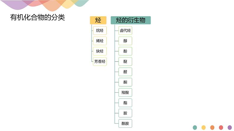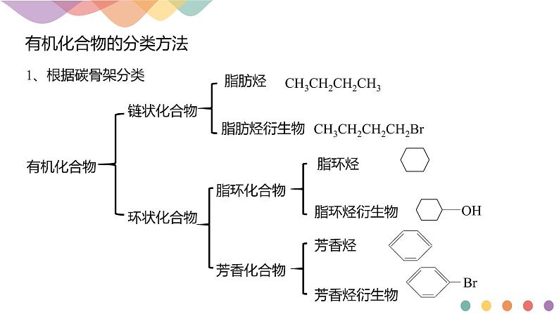 这是一份人教版 (2019)选择性必修3第一章 有机化合物的结构特点与研究方法本章综合与测试集体备课ppt课件,共39页。PPT课件主要包含了根据碳骨架分类,有机化合物,脂环化合物,芳香化合物,链状化合物,环状化合物,脂肪烃,脂肪烃衍生物,脂环烃,脂环烃衍生物等内容,欢迎下载使用。