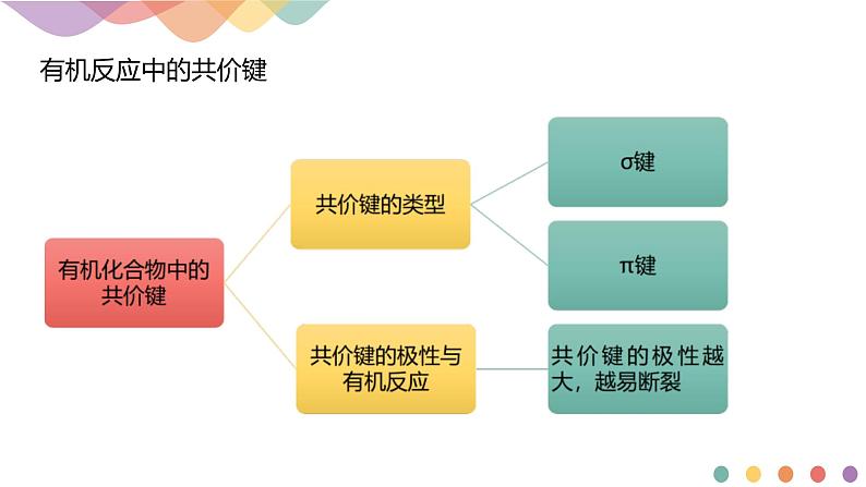 由于不同的成键原子间电负性的差异,共用电子对会发生偏移偏移的程度越大,共价键极性越强,在反应中越容易发生断裂有机化合物的官能团及其邻位的化学键往往是发生化学反应的活性部位。