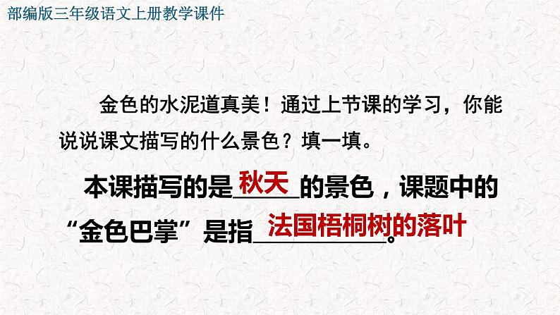 人教部编版三年级上册5 铺满金色巴掌的水泥道图片ppt课件
