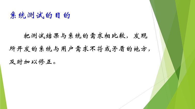 把测试结果与系统的需求相比较,发现所开发的系统与用户需求不符或矛盾的地方,及时加以修正。