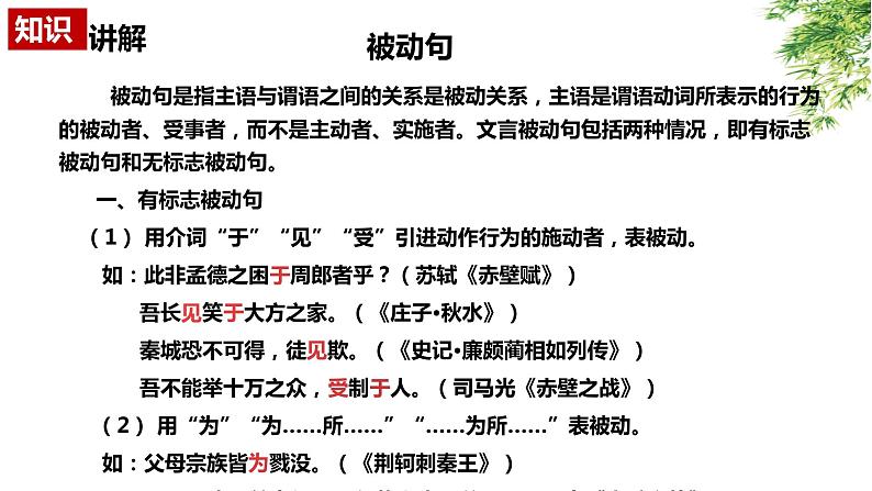 这是一份2023届高考复习:文言文特殊句式 课件,共41页。PPT课件主要包含了一般的语法结构,关注特殊句式,二定语后置,三状语后置,五固定句式,六判断句,七省略句,八被动句等内容,欢迎下载使用。