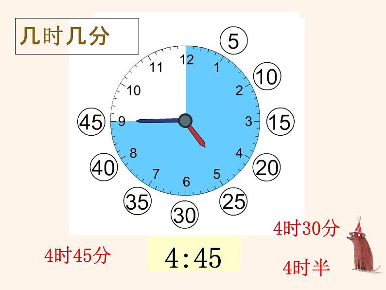 时针走过数字4,分针从12起走了多少个小格,就是4时多少分。