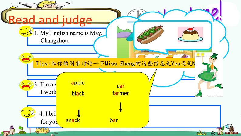 ● Read in rles and try t imitate. (分角色朗读并尝试模仿!)