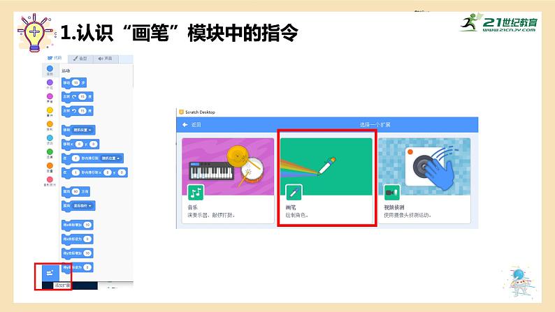 展开绘图是计算机的一个重要应用。人们通过输入计算机指令,经过计算机处理,可以输出各种各样的图形。这一节课,我们将学习使用Scratch软件中的“画笔”指令,通过编写程序在屏幕上画出丰富多彩的图形。