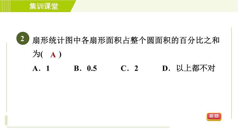 扇形统计图中各扇形面积占整个圆面积的百分比之和为( )A.1 B.0.5 C.2 D.以上都不对