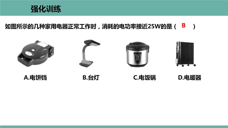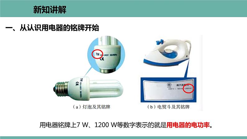 用电器铭牌上7 W、1200 W等数字表示的就是用电器的电功率。