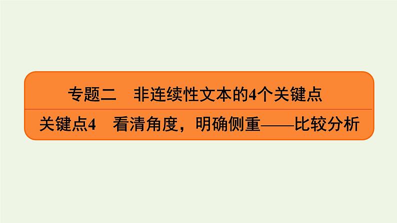 这是一份2020-2021学年 高中语文 二轮复习 专题2非连续性文本 比较分析课件,共24页。