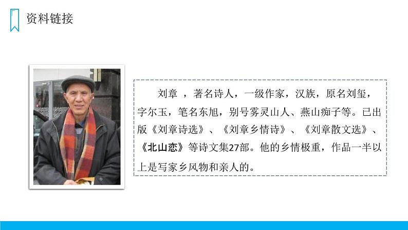刘章 ,著名诗人,一级作家,汉族,原名刘玺,字尔玉,笔名东旭,别号雾灵山人、燕山痴子等。已出版《刘章诗选》、《刘章乡情诗》、《刘章散文选》、《北山恋》等诗文集27部。他的乡情极重,作品一半以上是写家乡风物和亲人的。