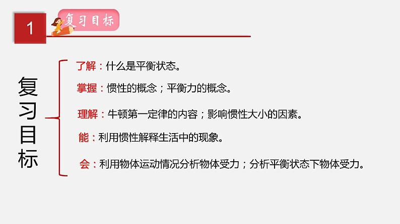 理解:牛顿第一定律的内容;影响惯性大小的因素。