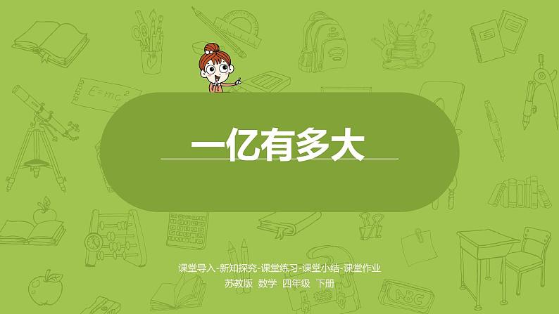 苏教版四年级下册一亿有多大授课ppt课件: 这是一份苏教版四年级下册一亿有多大授课ppt课件,共11页。PPT课件主要包含了一亿有多大,数一数,量一量,称一称,课外延伸等内容,欢迎下载使用。